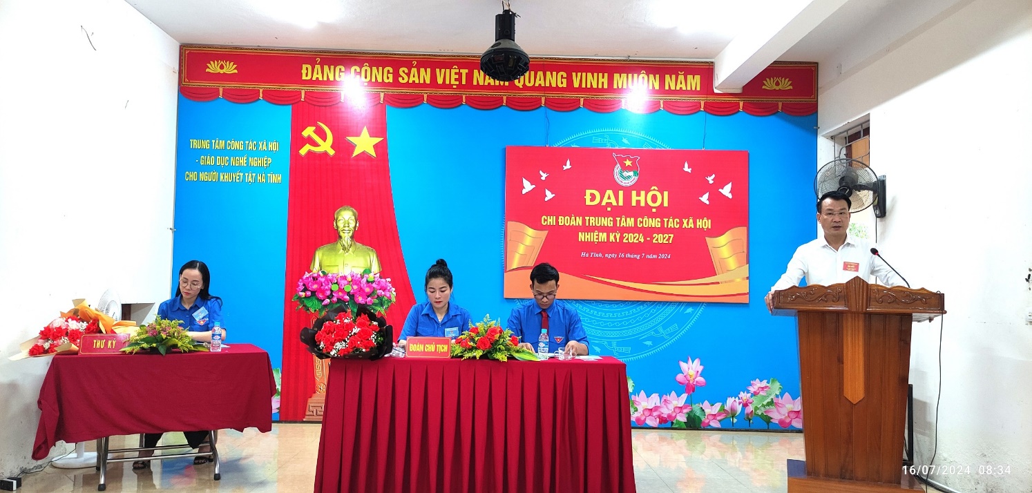 Tại Đại hội, đồng chí Thái Ngọc Lâm - Bí thư Chi bộ cũng đã dành cho tổ chức đoàn sự quan tâm sâu sắc, những tình cảm và ý kiến chỉ đạo đối với công tác đoàn và phong trào đoàn thanh niên chi đoàn Trung tâm CTXH, đồng chí nhấn mạnh Đoàn thanh niên cần phát huy hơn nữa tính xung kích, tích nguyện, sẵn sàng xông pha công hiến hết sức mình cho Đơn vị, cho tổ quốc Việt Nam, tiếp tục trau dồi bản lĩnh chính trị, đạo đức, lối sống, tiếp tục học tập nâng cao lý luận chính trị, nghiệp vụ chuyên môn, phát huy truyền thống tốt đẹp của Chi đoàn, của Chi bộ qua các thời kỳ để hoàn thành xuất sắc nhiệm vụ của đoàn, là cánh tay phải đắc lực của Đảng, góp phần vào thành tích chung của Đơn vị, của Ngành Lao động - Thương binh và Xã hội.